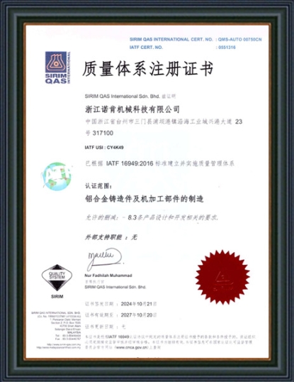 浙江諾肯機(jī)械科技有限公司(原黃巖新興機(jī)械配件有限公司)成立于1983年,坐落于浙江省東海之濱臺(tái)州市三門縣沿海工業(yè)城,現(xiàn)有員工160余人,總體占地面積40000平米。公司秉承“誠信為本、精工細(xì)作”的精神,現(xiàn)已發(fā)展成為集研發(fā)、制造及營銷為一體的鋁合金精密鑄件生產(chǎn)基地,為客戶提供精密鑄造、熱處理和精密機(jī)加工的一體化解決方案。